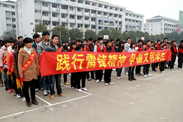 按照省文明办“学习雷锋好榜样”集中行动的有关精神,校团委、青年志愿者协会围绕建设文明校园、平安校园的总体目标,狠抓工作落实,采取有力措施解决当前文明就餐、文明教室和校园安全等问题,努力建设文明和谐的校园环境,在全院广大团员青年中组建青年志愿者集中开展“三引领”活动,即志愿服务“引领文明礼仪”、“引领环境文明”、“引领社区文明”活动。