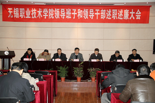 根据省委组织部《体现科学发展观要求的江苏省高等学校领导班子和领导干部任期目标考核评价办法》的要求,2012年1月10日下午,我校在国际交流中心二楼报告厅召开领导班子和领导干部述职述廉大会,全体院领导、中层干部、高级职称人员、博士、市人大代表、市政协委员和各民主党派代表共130余人出席了会议。