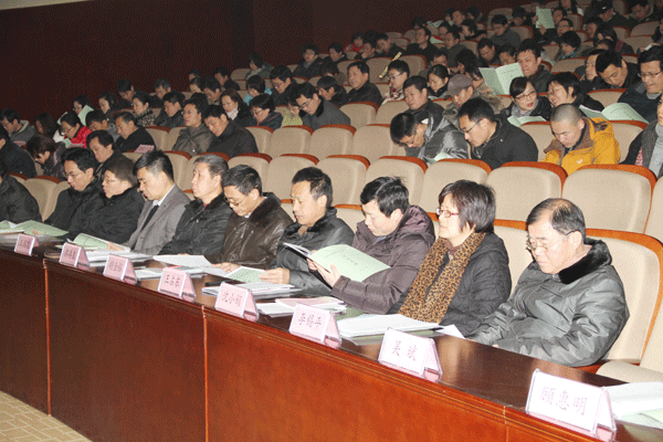 上午9时,与会代表审议通过三届三次教(工)代会议程后,大会在雄壮的国歌声中开幕。接着,戴勇院长从质量工程、基础建设、加强管理等五个方面做了学院2011年度工作报告,在充分肯定成绩的同时,指出了存在的不足。在部署2012年工作时,戴勇院长指出,我们要以“科学发展、创新发展、和谐发展”为主题,以提高教育质量、服务经济转型、践行创先争优为主线,以立德树人为根本,以建设“国家级物联网示范学校”为抓手,努力实现“四个重点突破”,全力推进“质量立校、人才强校、开放兴校、文化厚校”战略,创造优异成绩迎接党的十八大胜利召开。并提出了九大工作目标,即完成机构、院系调整,配好各级各类干部,提高执行力;实施人才强校战略,深化人事分配制度改革,提高教职工在学校改革、发展和管理工作等方面的积极性和创造性,力争完成“双高”人才引进、培养“双二十”计划,增强学院的科研水平和“四技”服务能力;完成国家级物联网示范校项目年度任务,实现阶段目标;全力支持无锡市促进高等职业教育发展综合改革试验区建设,深化教育教学改革,探索高职本科、中高职衔接等人才培养工作,完成普通高校公共艺术等专项考核、评估工作;以学生养成教育为重点,继续深化“一站式”服务,提高素质教育成效;完善招生就业工作体系,落实“领导负责、部门统筹、院系推进、绩效考核”的招生就业工作机制,积极探索留学生招生;依据绩效管理要求,完善财务资产管理及国有资产管理方案并组织实施;有序推进校园基本建设,启动留学生综合楼建设项目,完成智能工厂厂房建设等项目;维护学院安全稳定,推进和谐校园建设,完善反腐倡廉制度建设,创建平安校园。同时安排了八个方面的主要工作任务。