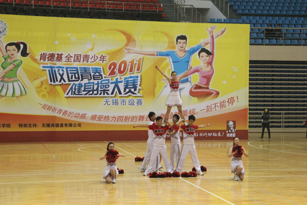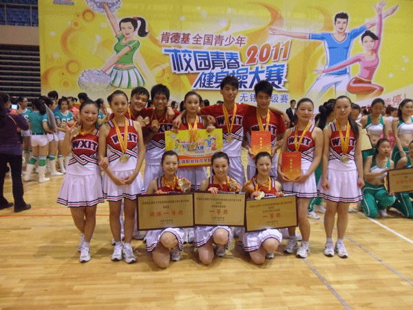 11月13日,“2011全国青少年校园青春健身操大赛无锡市级赛”在无锡商业职业技术学院拉开帷幕,我校代表队一路过关斩将,获花球啦啦操自选套路一等奖、啦啦操基础套路一等奖和团体一等奖。