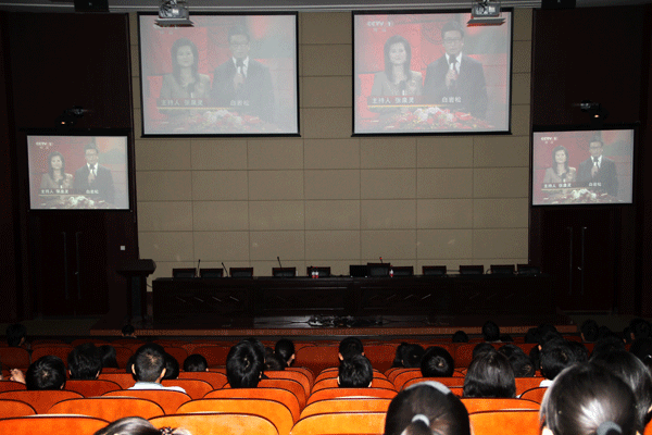 10月25日下午,数百名师生员工汇聚国际交流中心一楼报告厅,集体观看“德耀中华”第三届全国道德模范颁奖典礼视频。这是党委组织部、宣传部为深入开展“践行师德创先争优,办人民满意教育”主题实践活动而组织的一次集中学习活动。