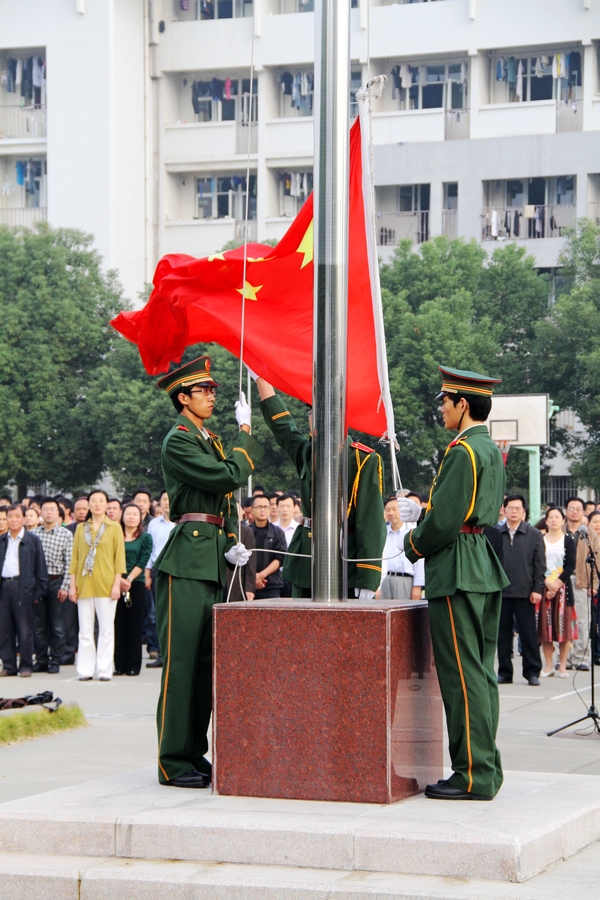 太湖校区的升旗仪式由团委副书记苗勇主持,外语系商务英语61132班承担升旗任务,全体师生员工在庄严的气氛中升国旗、唱国歌后,党委副书记谈向群发表了题为“继承革命先辈遗志 弘扬爱国主义精神”的国旗下讲话。