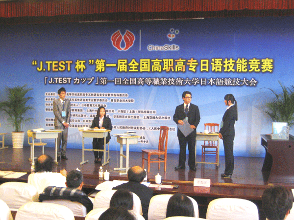 本次大赛由教育部高职高专其他语言类专业教学指导委员主办,是全国大专院校的首次日语赛事,突出职业生涯规划与设想、工作情境等主题。通过全国预选,来自北京、上海、山东、江苏、福建等17个省市自治区的46所院校(其中7所为外语类院校)参加决赛。大赛最终评出个人赛项一等奖7名,我校胡一栋同学名列第二,为江苏省唯一获得一等奖的个人选手。