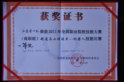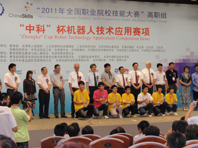 6月26日,全国职业技术院校技能大赛高职组“机器人技术应用”赛项在经过两天紧张比赛后,圆满落下帷幕。由我院代表队组成的江苏省一队在预赛中仅用24秒就完成规定任务,比第二名领先11秒,以绝对领先的成绩挺进决赛。决赛中,经过两场小组循环赛,我院代表队完胜对手,赢得一等奖且综合得分为第一名。