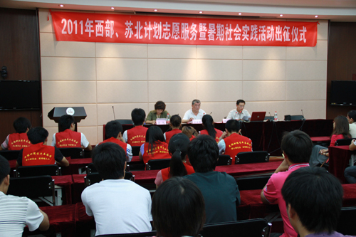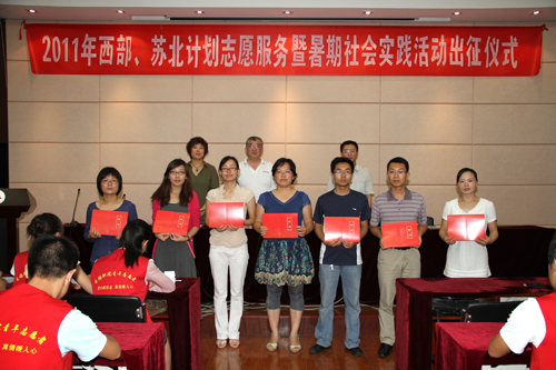 6月30日下午,我院今年西部、苏北计划志愿者服务暨暑期社会实践活动出征仪式在国际交流中心第二报告厅举行。