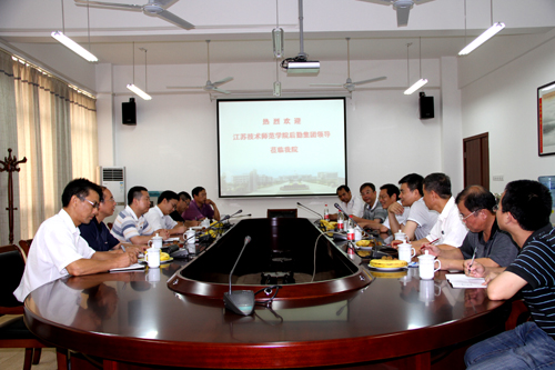 7月7日下午,江苏技术师范学院后勤集团领导一行五人来我院交流工作,院领导朱爱胜、副院长谈向群、党办主任王国忠及后勤领导李燮平、陶惠良等在国际交流中心203会议室接待了来访客人并交流探讨高校后勤工作。