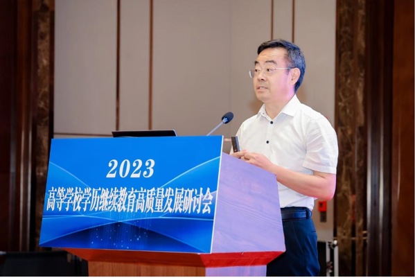 为贯彻落实党的二十大报告关于“建设全民终身学习的学习型社会、学习型大国”的部署要求,落实《教育部关于推进新时代普通高等学校学历继续教育改革的实施意见》 《普通高等学校举办非学历教育管理规定(试行)》等一系列政策文件精神,促进高等学历继续教育提质创优,8月26日至27日,中国成人教育协会、高等教育出版社在杭州联合举办高等学校学历继续教育高质量发展研讨会。教育部职业教育与成人教育司相关部门负责人,各高校校长、副校长,学历继续教育相关领导、管理部门和学院负责人200名余名代表参加会议。会议由中国成人教育协会副会长兼秘书长赵跃进主持,高等教育出版社副总编辑龙杰、中国成人教育协会副会长江波、杭州市教育局党委委员、副局长孙青峰等致辞。教育部职成司高等继续教育处副处长徐璐做了《新时代高等继续教育高质量发展的形势与任务》的主旨报告。