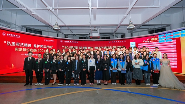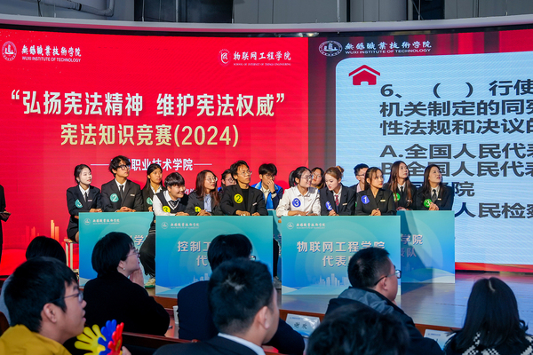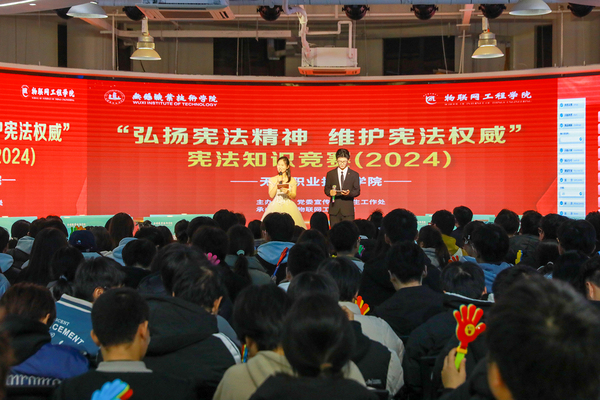 为深入弘扬宪法精神,着力提升大学生的法治素养,积极营造浓厚的校园法治文化氛围,12月5日晚,由党委宣传部与学工部联合主办,物联网工程学院承办的“弘扬宪法精神,维护宪法权威”宪法知识竞赛在路演大厅隆重举行,校党委副书记杨雪琴及党委宣传部、党委学工部、校团委、物联网学院、财经学院等部门负责人,以及来自各学院的200余名师生代表参与了活动。