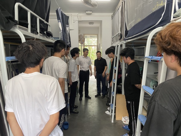 奚茂龙一行巡查了宿舍安全,要求留校的同学们做好宿舍的用电安全及防火、防盗和卫生工作。对于假期返乡同学,提醒同学们行程中注意交通安全和财务安全。希望同学们假期合理安排作息,过一个积极、健康、愉快的假期。