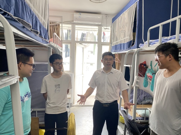 国庆节前夕,副校长奚茂龙深入学生宿舍走访,了解和掌握学生在校期间的宿舍学习生活情况以及提醒做好节日期间的宿舍安全防范工作。