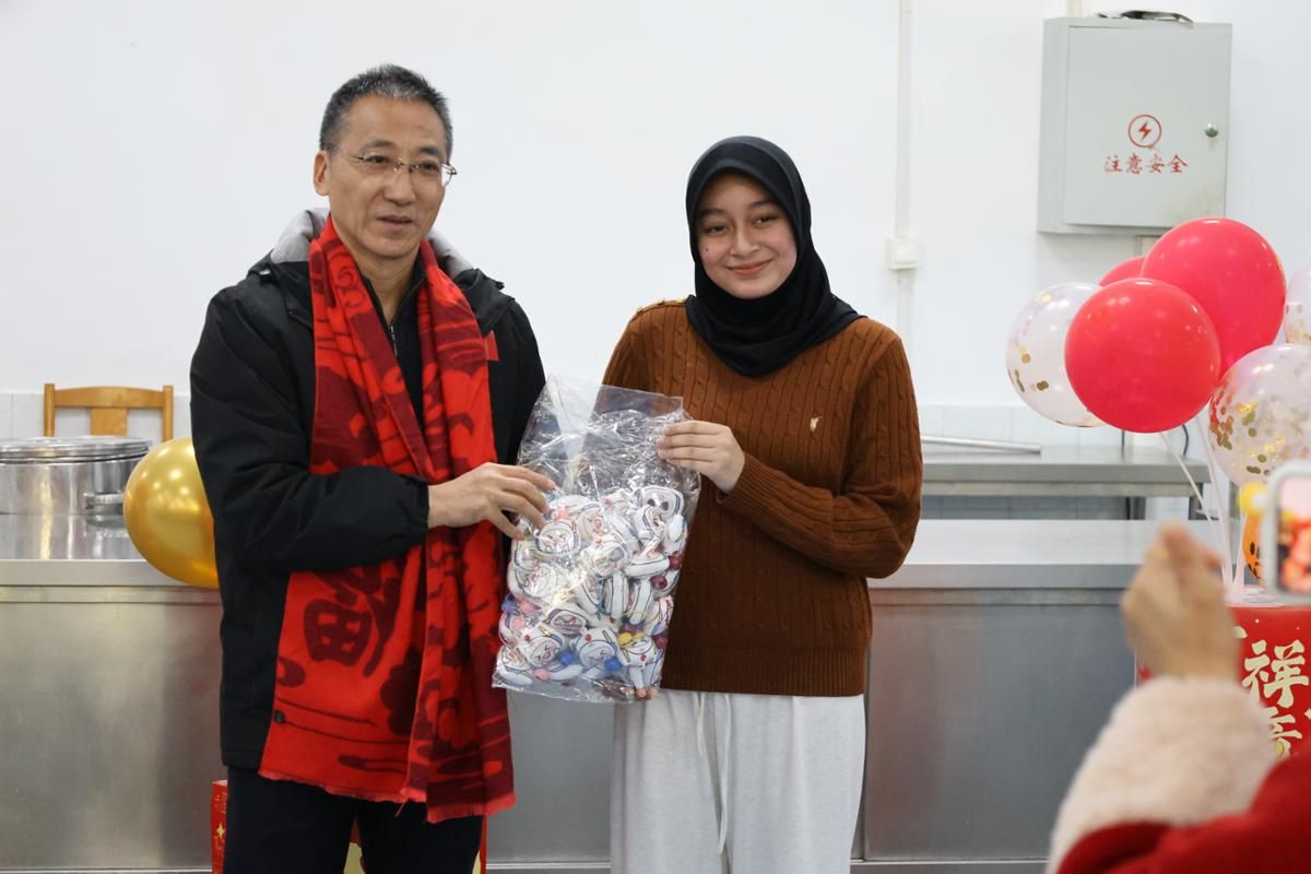 1月21日,学校2025年“金蛇贺岁”春节团拜会在教工餐厅举行。全体校领导、相关职能部门负责人、国际教育学院教师代表与来自印尼、俄罗斯、巴基斯坦、坦桑尼亚等国家的46名留学生一起感受传统中国年的浓浓年味。