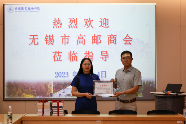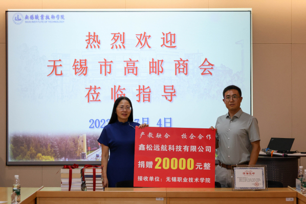 杨雪琴代表学校接受图书捐赠并为鑫松远航科技无锡有限公司颁发捐赠证书,向陈峰总经理再次表示感谢。随后,商会一行人参观了学校图书馆、智能制造工程中心、学生处就业中心等地。