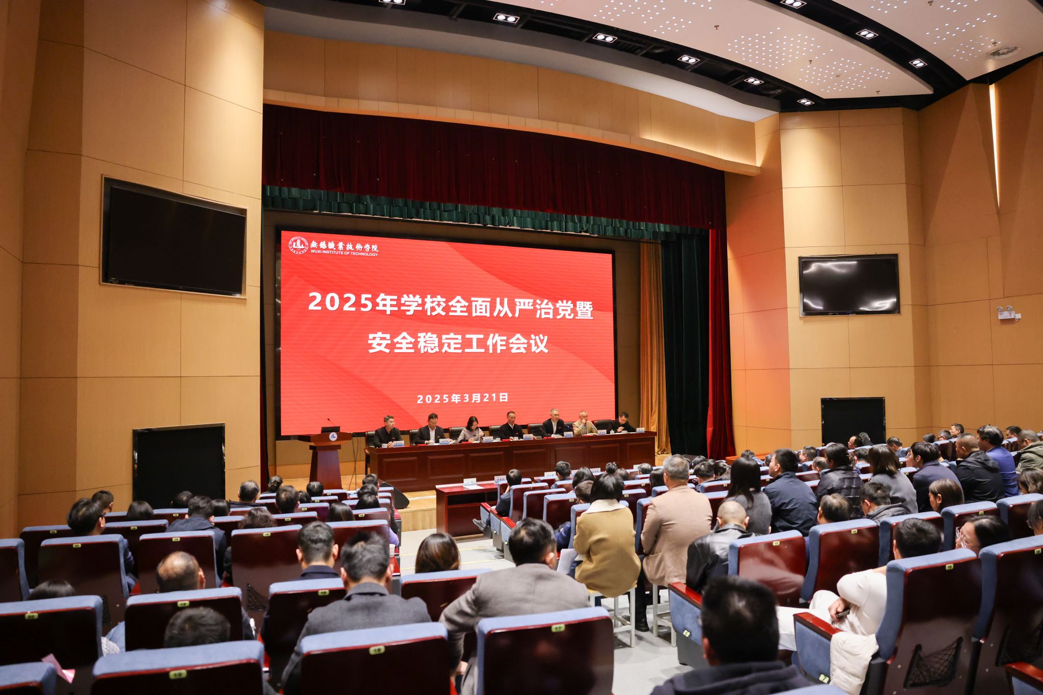 全体在锡校领导、全体中层干部、校纪委委员、各二级党组织纪检委员、校安全联络员和受表彰教师参加会议。大会由党委副书记、校长周桂瑾主持。