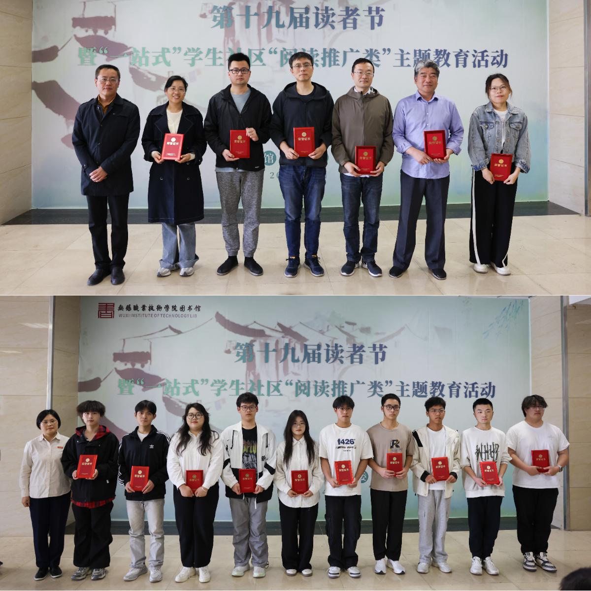 开幕式现场表彰了2024年度优秀师生读者、图书馆优秀学生志愿者、优秀学生馆员,宣传部、学生处、校团委、校工会等部门领导为获奖人员颁发证书,通过表彰,鼓励师生培养良好阅读习惯,奖励为学校阅读工作做出贡献的师生。