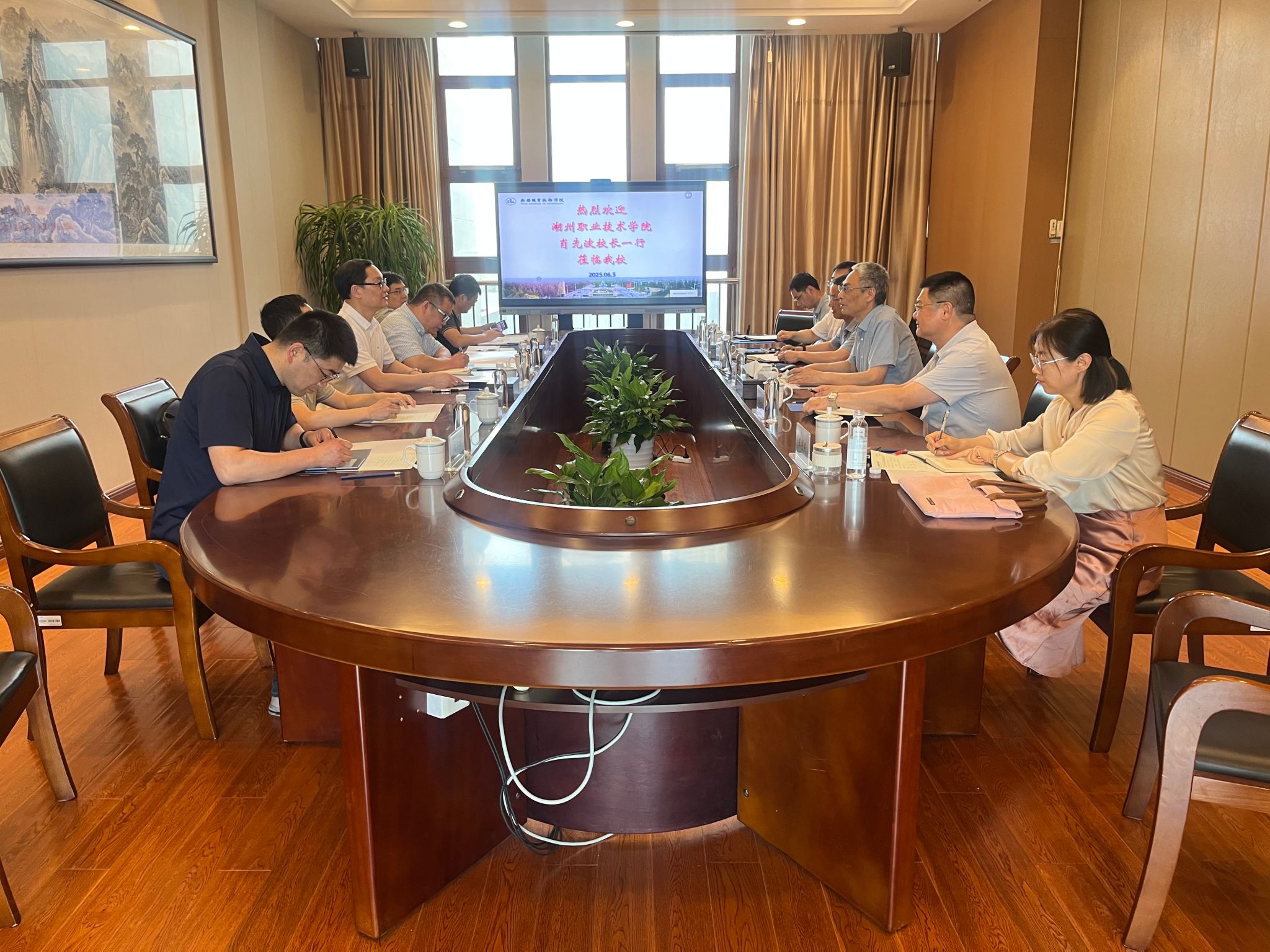 6月5日下午,湖州职业技术学院校长肖先波一行来校调研。周桂瑾校长及发展规划处、科技产业处、双高校建设办公室、教务处汽车与交通工程学院相关负责人参与交流。