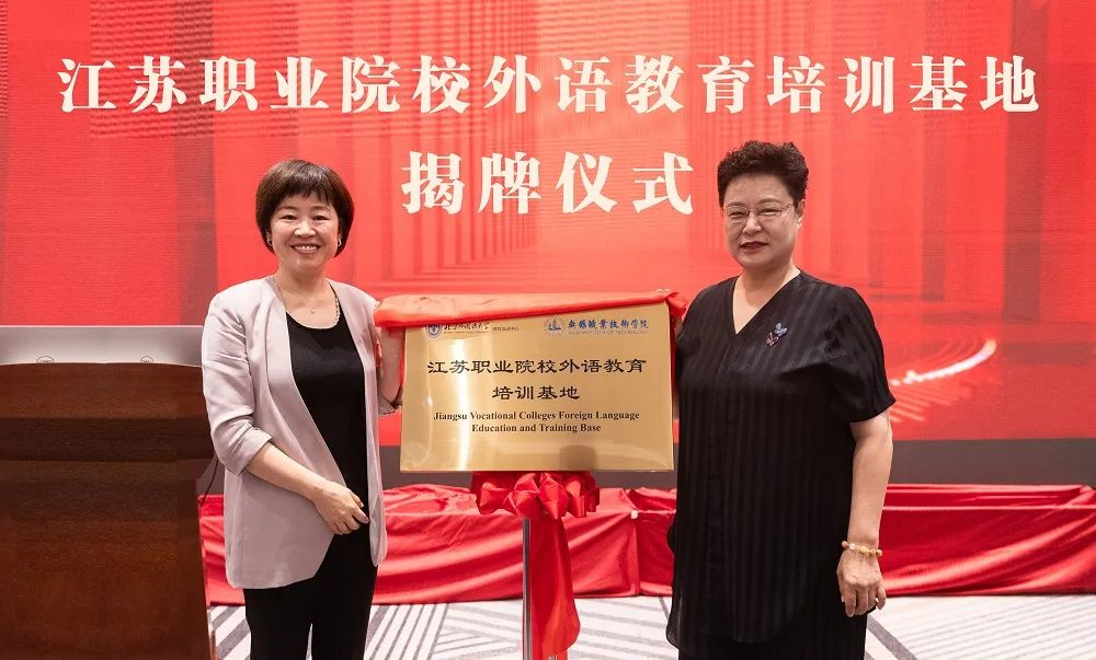 会上,外语教学与研究出版社职业教育出版分社社长李淑静和我校公共外语部主任熊英共同为“江苏职业院校外语教育培训基地”揭牌。多年来,外研社与江苏省各院校在外语教学改革、教师发展和学术研究方面深度合作,成果显著。学校秉持“立足产业、服务区域”的办学理念,公共外语部紧跟“新职教”背景下英语教学转型升级大势,积极探索“语言+技能+素养”融合育人模式。为进一步整合优质资源、服务教师成长,双方促成本基地成立。