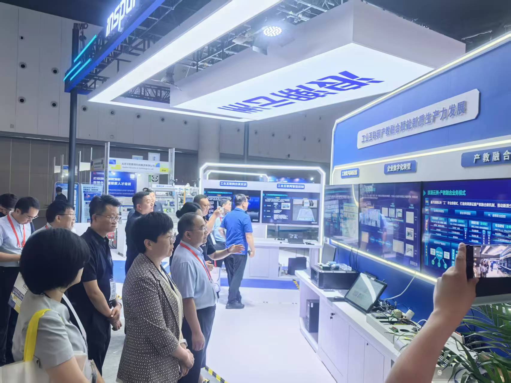 会议期间,我校携手浪潮云洲公司共同设立展位,重点展示了双方联合开发的融合型工业互联网生产线自动监控实训设备。该设备由学校自主设计,校企深度合作打造,以服务日常教学和1+X技能证书培养为核心目标,深度融合工业数据采集、可视化看板开发、云平台部署应用等前沿技术,实现了教学内容与产业需求的无缝对接。