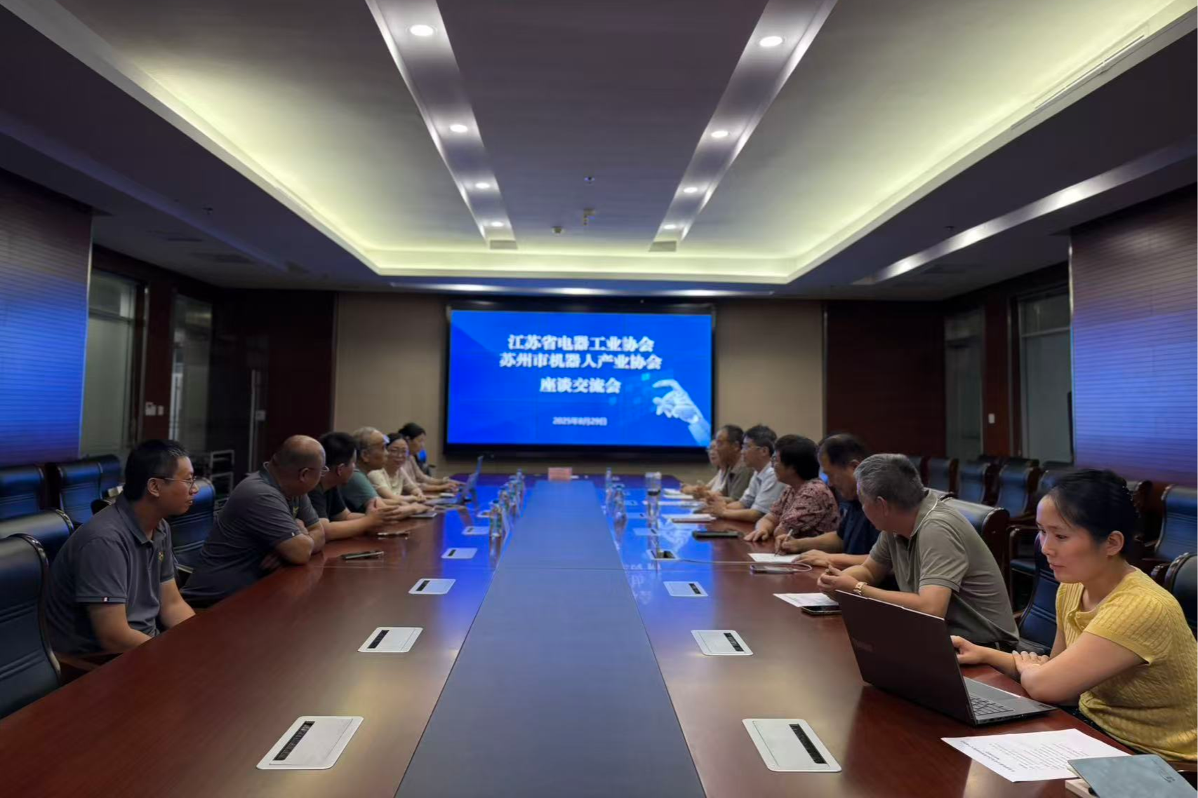 8月29日,由我校副校长奚茂龙牵头,联合江苏省电器工业协会,组织协会首席专家陆建华、副秘书长陆育青及吴江变压器、龙源电力、无锡军工智能电气、苏州电科院等多家合作企业代表,赴苏州大学相城机器人与智能装备研究院,与苏州市机器人产业协会开展“机器人+电器”产业链校企协同专题对接。控制工程学院教师代表参与座谈。