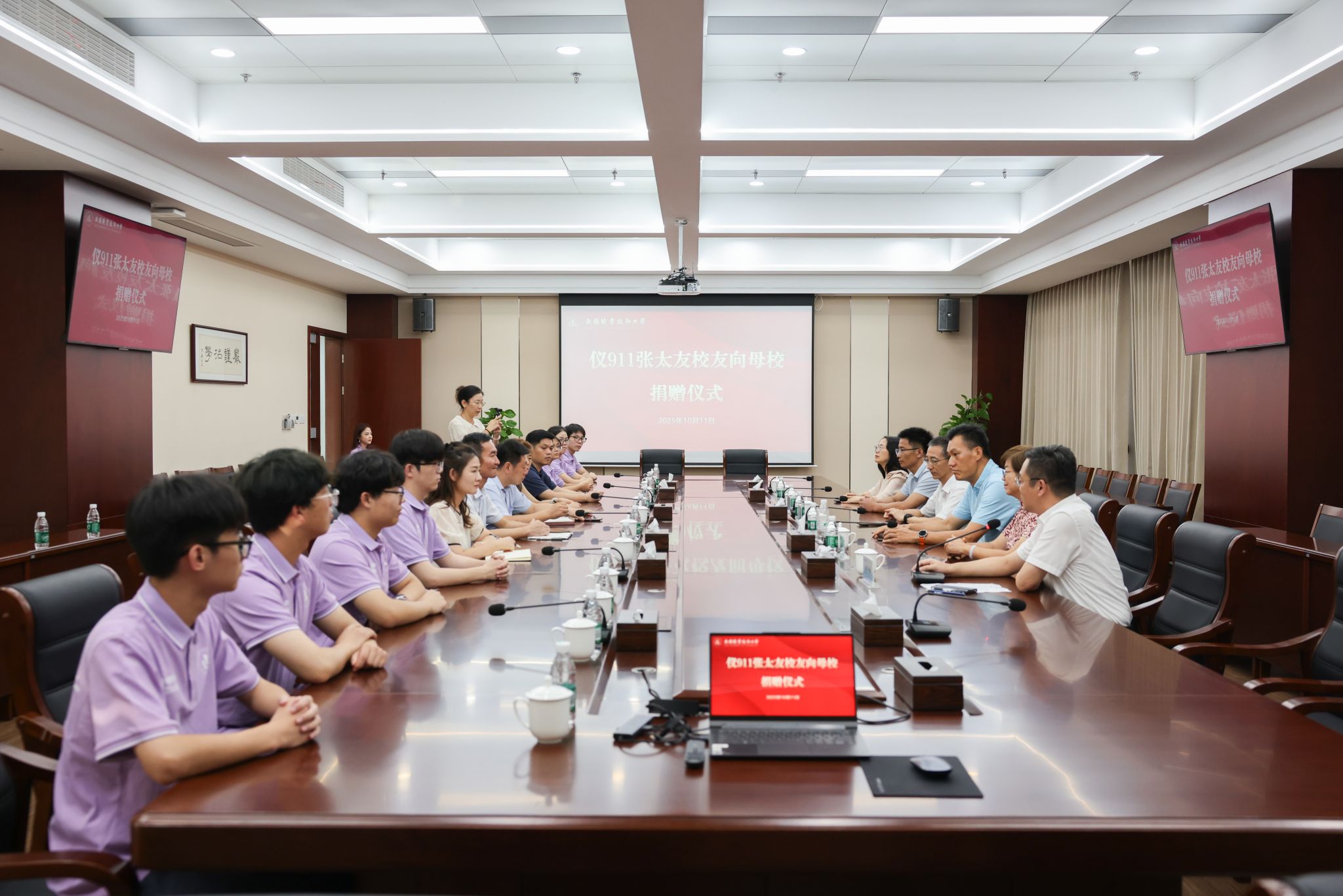 饮水思源明心志,感恩母校培育情。10月11日,无锡星友包装材料有限公司董事长、仪表911班校友张太友重返母校,以实际行动回馈教育,助力学校教育事业发展。捐赠仪式在厚德楼1209会议室举行,校领导龚方红、杨雪琴、储开峰及党校办、学生处、校友办、集成电路学院师生代表参加仪式。