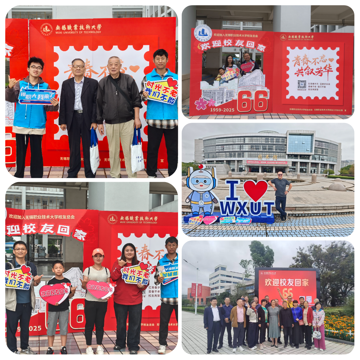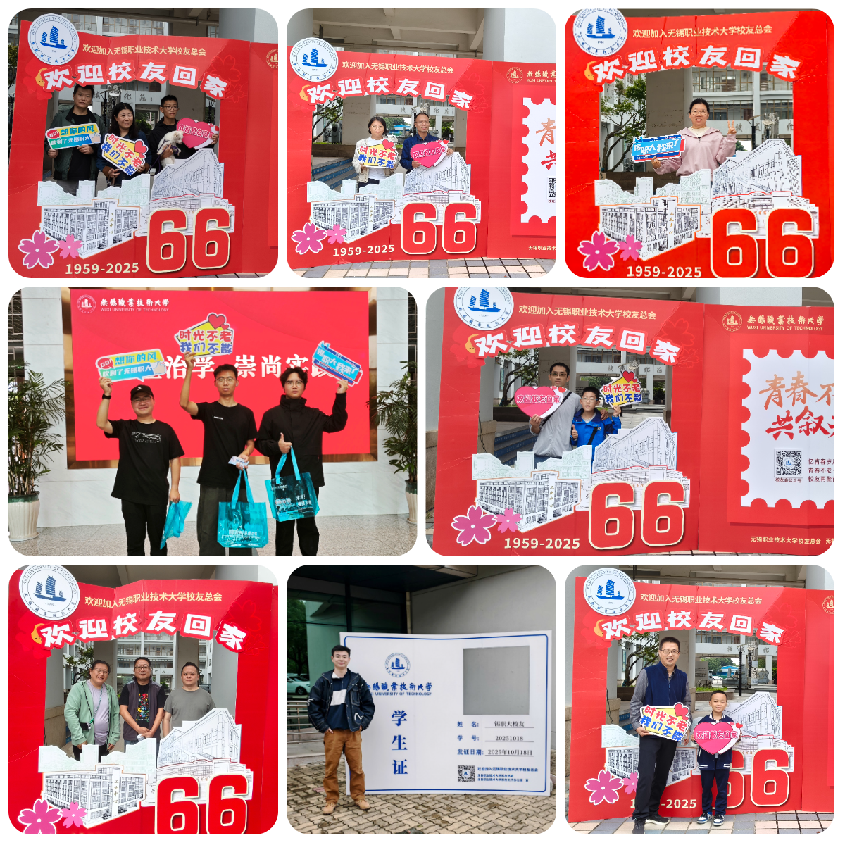 校园内,精心设置的打卡点如南门、北门、图书馆、机械文化苑、无锡院士馆、第一餐厅及牡丹园等处,错落分布,处处洋溢着浓厚氛围。从承载岁月痕迹的学校大门到绿树成荫的林荫大道,从焕发新颜的智慧餐厅到青春活力的牡丹园,每一处都镌刻着校友们的青春印记。校友们手持打卡道具,在各打卡点拍照留念,或与好友摆出创意姿势,或独自沉浸于往昔回忆,脸上写满幸福与感慨。完成打卡任务的校友还获得校友专属纪念徽章,这份特别礼物既是对青春时光的纪念,也承载着母校对校友的深切牵挂与祝福。