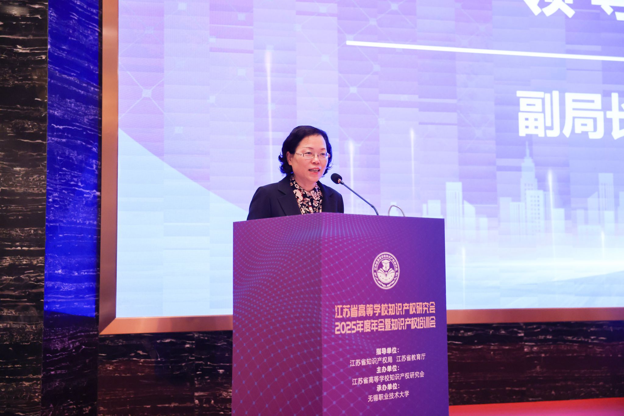 王英介绍了无锡市知识产权工作的整体布局与发展优势。她表示,无锡作为创新型城市,始终将知识产权作为核心战略资源,将以此次会议为纽带,进一步深化政企校协同创新,完善知识产权服务生态,为高校知识产权成果在锡转化落地提供全链条支持,助力打造区域知识产权创新高地。