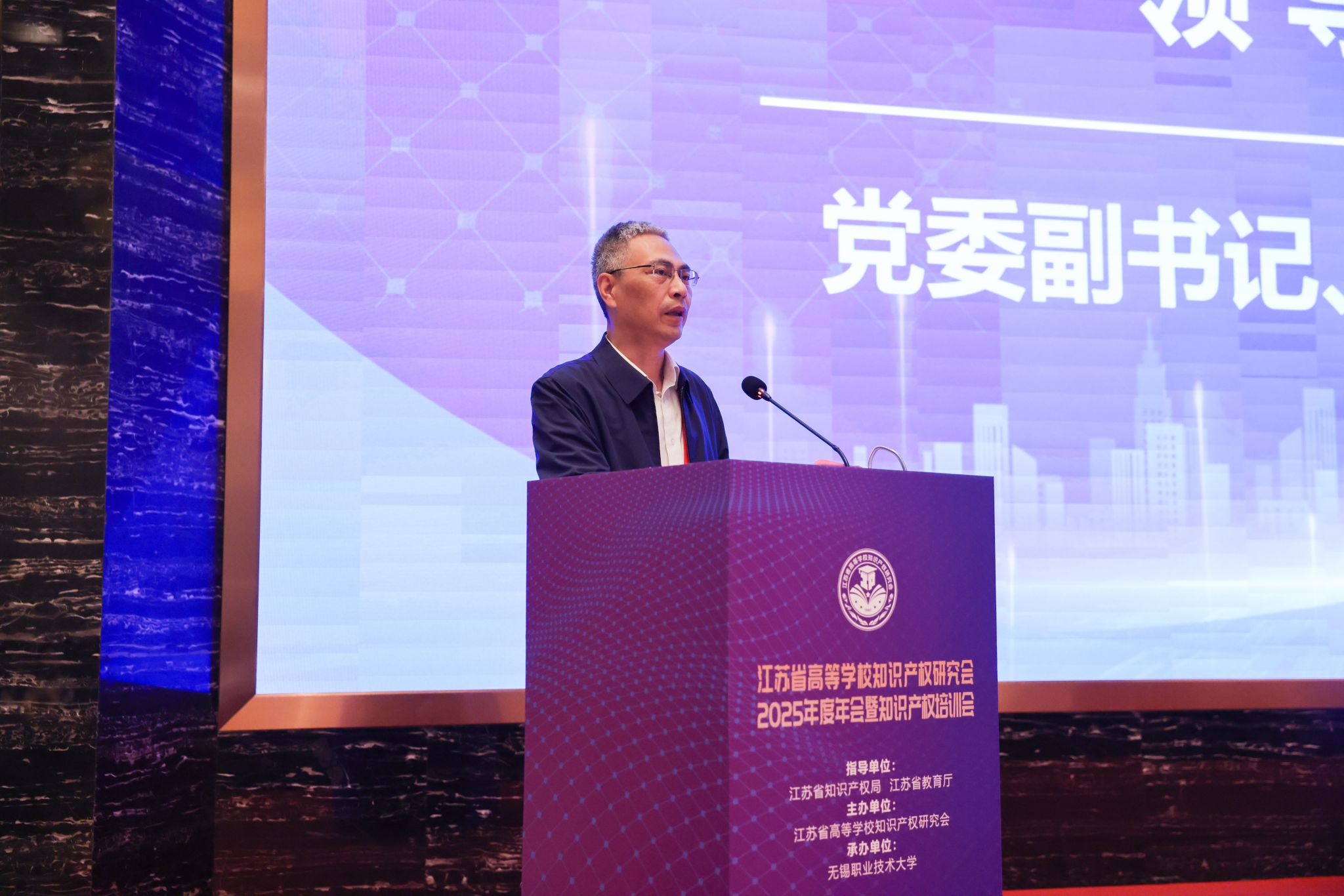 周桂瑾对各位领导、嘉宾的到来表示诚挚欢迎,向长期支持学校发展及本次会议承办的各方单位表示衷心感谢。他介绍了学校在知识产权教育、科研创新、成果转化等方面的实践探索与成效,并表示学校将以此次会议为契机,深化与全省高校的交流合作,持续强化知识产权工作赋能职业教育高质量发展的支撑作用,为服务无锡乃至江苏产业转型升级贡献更大力量。