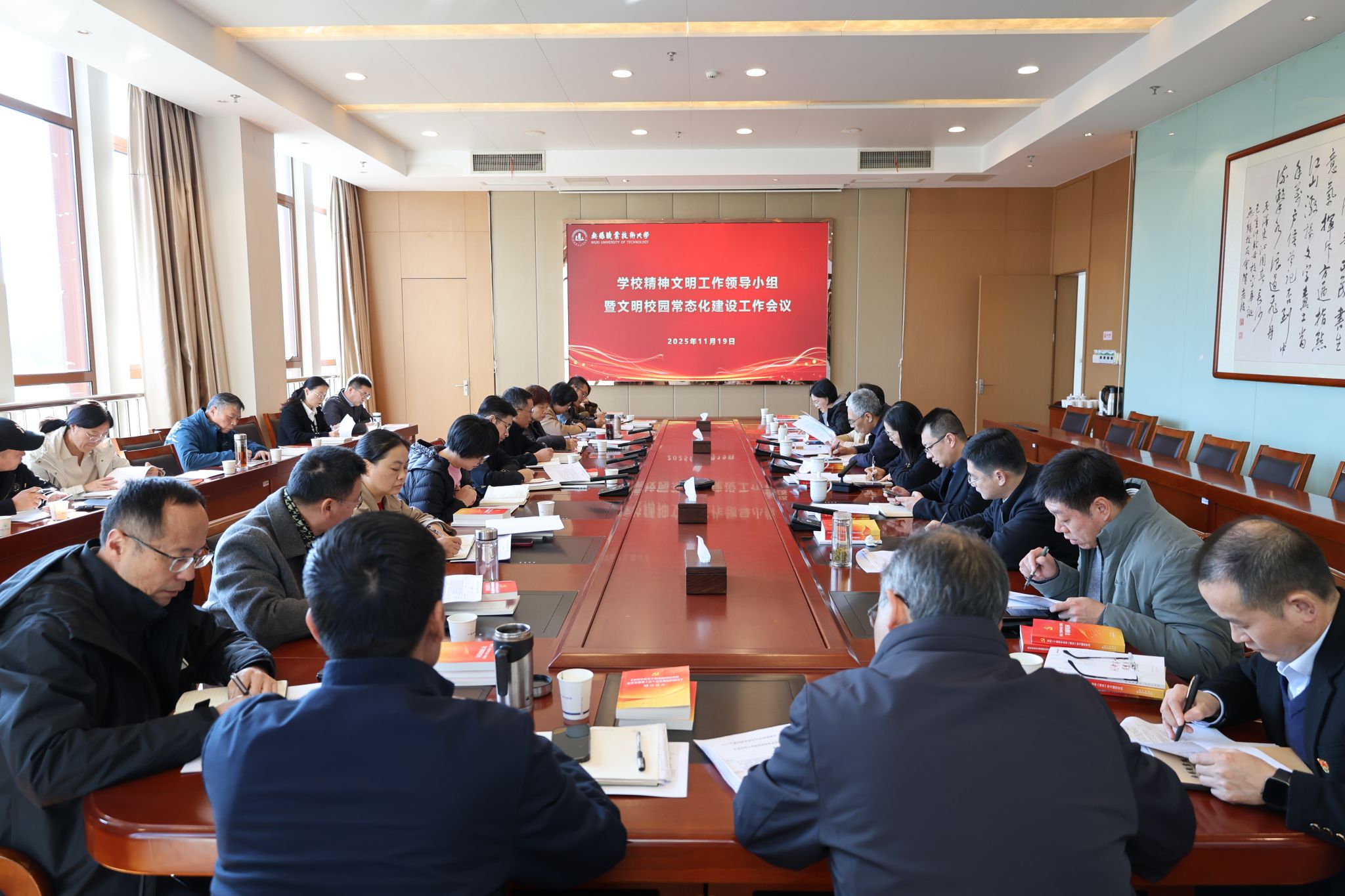 11月19日下午,学校召开精神文明建设领导小组暨文明校园常态化建设工作会议,总结学校文明校园建设成效,深入分析当前形势,系统部署下一阶段重点任务,为持续深化文明校园创建凝聚共识、夯实责任。