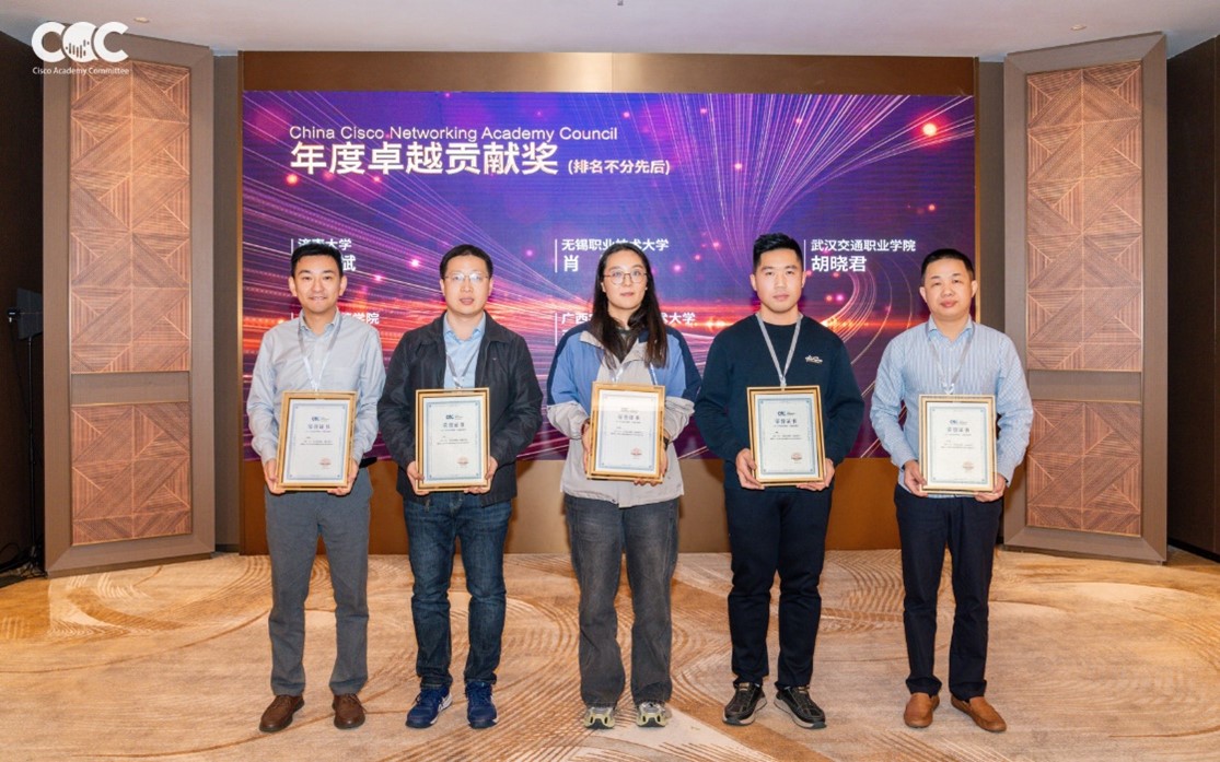 11月14日至16日,2025年度思科网院教师论坛暨第十九届理事大会在南宁召开。本次论坛以“匠心育才·聚启生态·智赢未来”为主题,汇聚思科大中华区资深副总裁兼首席技术官侯胜利、公共事业部全体成员、中国思科理事会成员,以及来自全国本科与职业院校的近百名专家学者与网络专业骨干教师。我校凭借在校企合作与人才培养方面的突出表现,荣获“年度典范网院(职业院校)”称号,教务处吴伟老师、物联网工程学院肖颖老师分别获评“年度卓越贡献奖”。