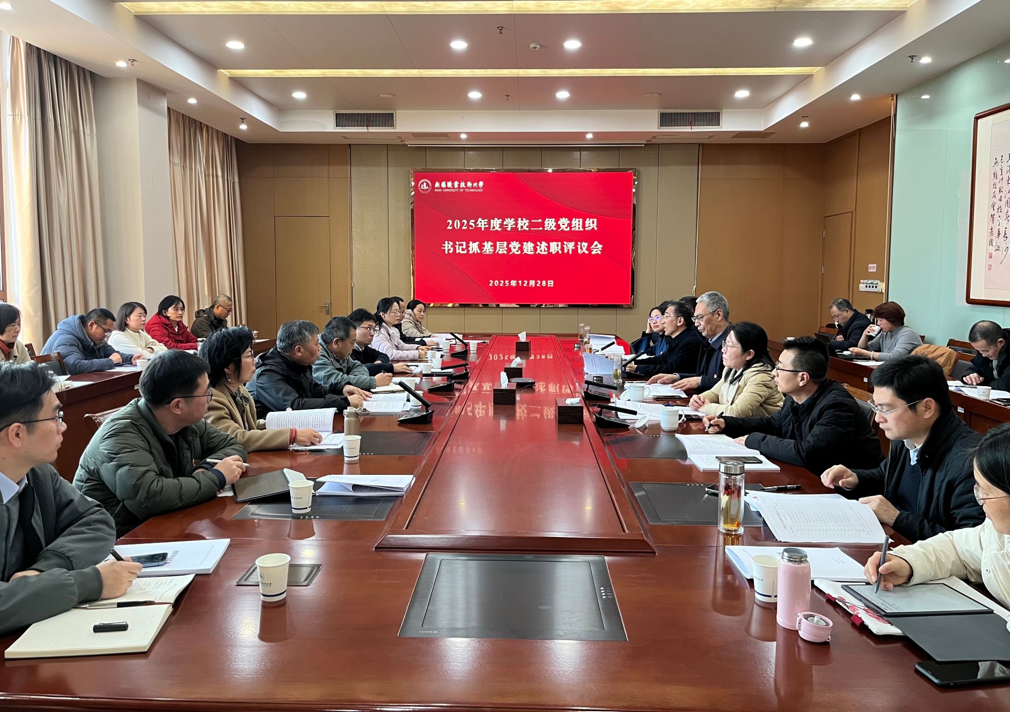 12月28日下午,2025年度学校二级党组织书记抓基层党建工作述职评议会在厚德楼F201会议室举行。校党委书记龚方红主持会议并讲话,全体校领导、党委委员、党委职能部门负责人参加会议,听取二级党组织书记抓基层党建工作述职并进行评议。