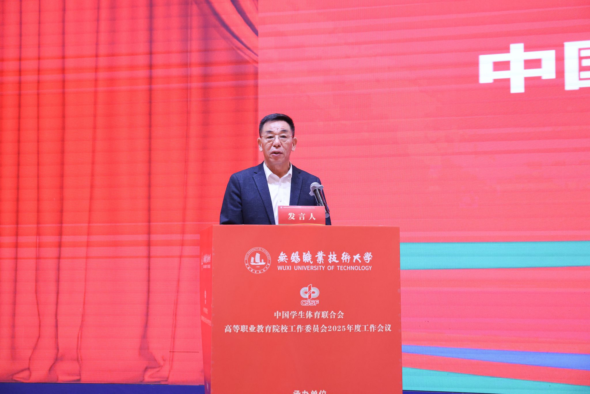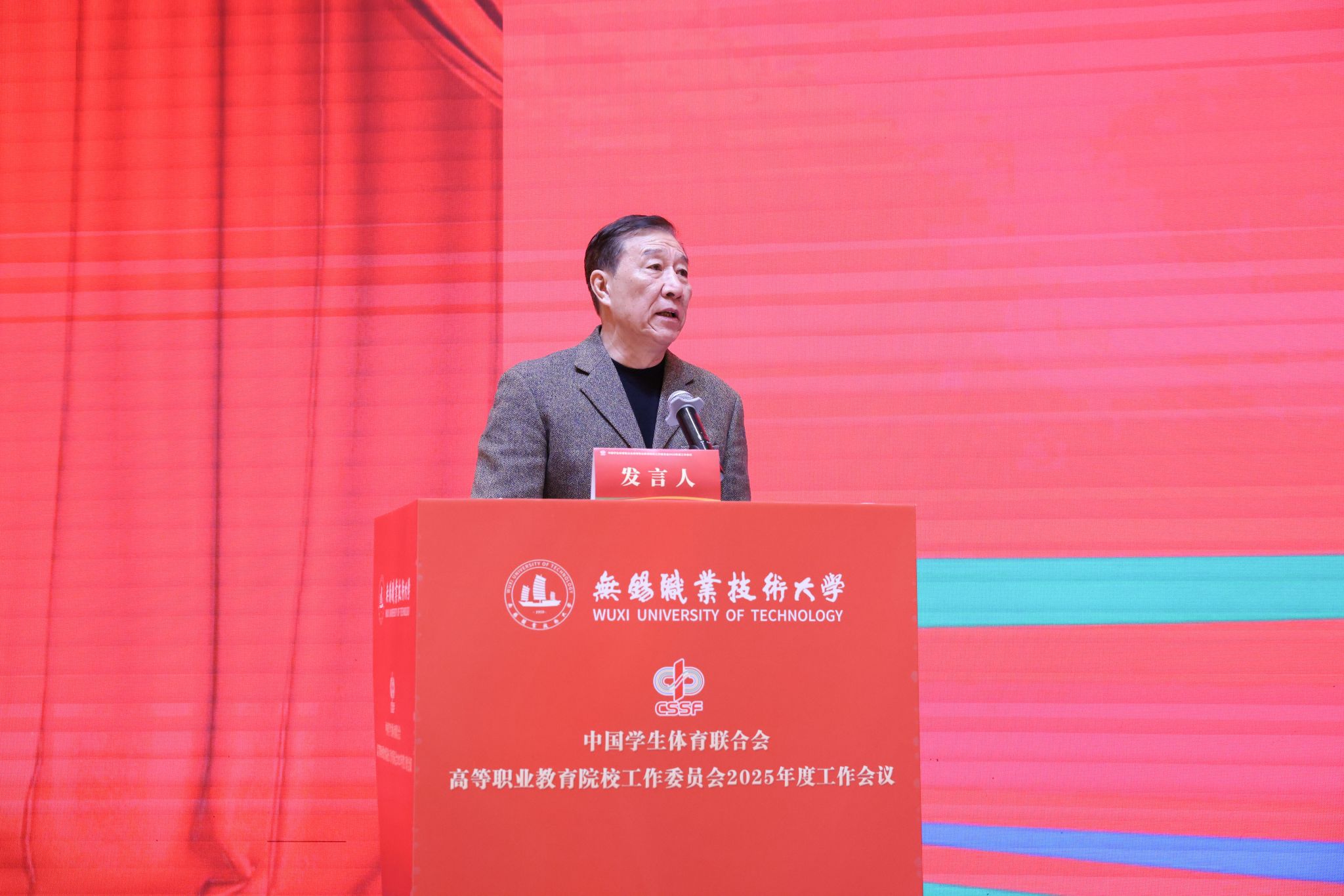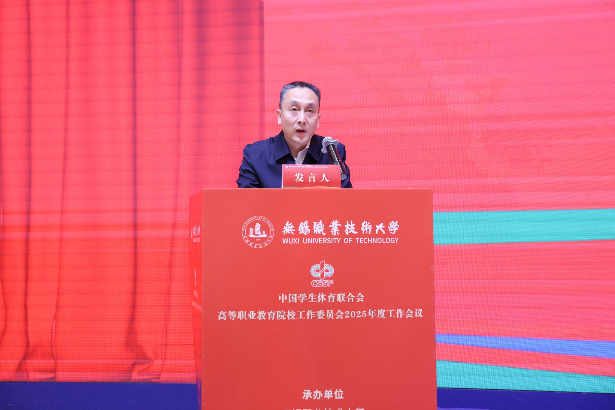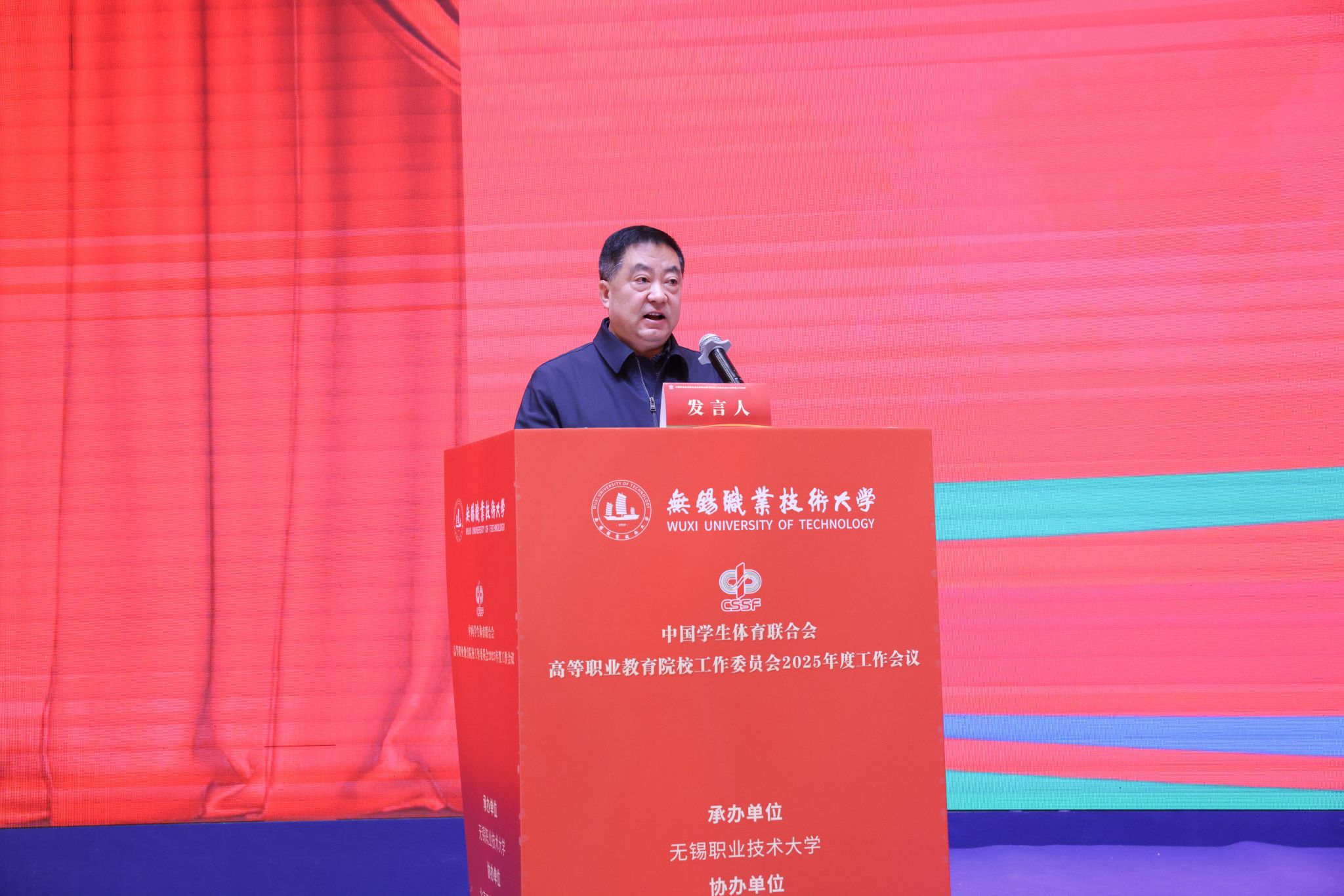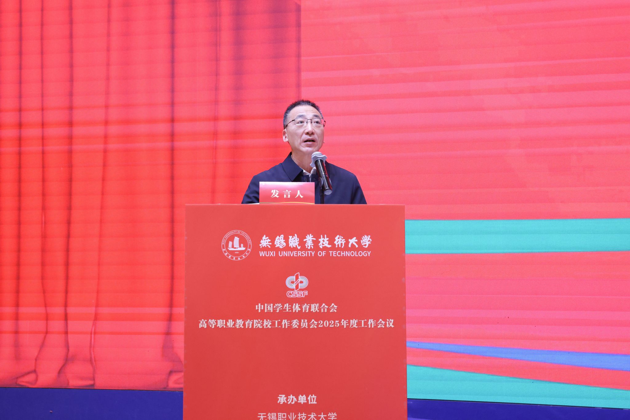 开幕式上,教育部学生体育协会联合秘书处副秘书长、中国学生体育联合会副主席满开杰、江苏省教育厅体育卫生与艺术教育处处长李海宁、中国学生体育联合会高等职业教育院校工作委员会主席安江英和教育部全国高等学校体育教学指导委员会副主任杨桦分别致辞,中国学生体育联合会高等职业教育院校工作委员会秘书长贾书申代表中国学生体育联合会职教分会向大会作了2025年度工作报告。校党委书记龚方红致欢迎辞,他介绍了学校的发展历程、建设成果和体育教育改革创新实践,希望各院校加强交流合作,在经验分享、资源共享中实现共同进步,推动体育教育事业高质量发展。