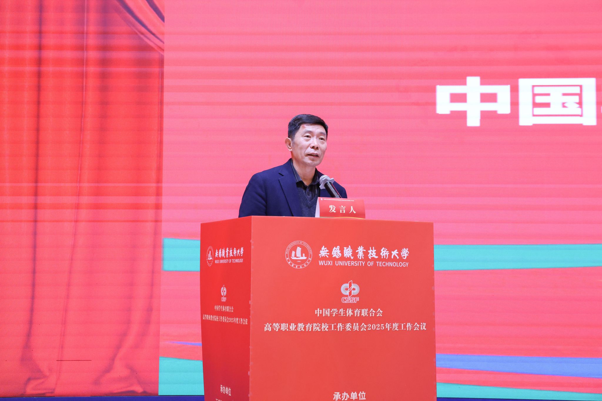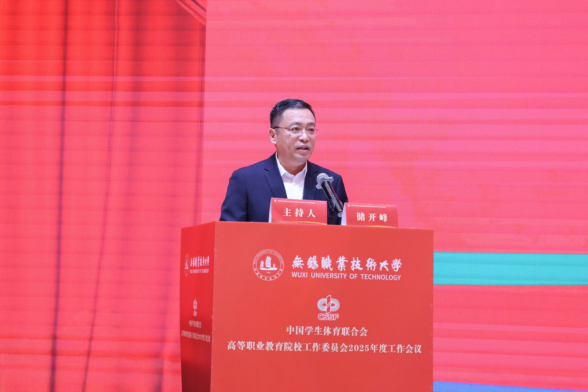 1月7日至8日,中国学生体育联合会高等职业教育院校工作委员会2025年度工作会在江苏无锡举行。本次会议由我校承办,北京工业职业技术学院、南京信息职业技术学院协办。来自全国29个省(自治区、直辖市)311所会员单位的校领导、体育院(系)负责人及骨干教师等近500名代表参加会议。开幕式由校党委委员、副校长储开峰主持。