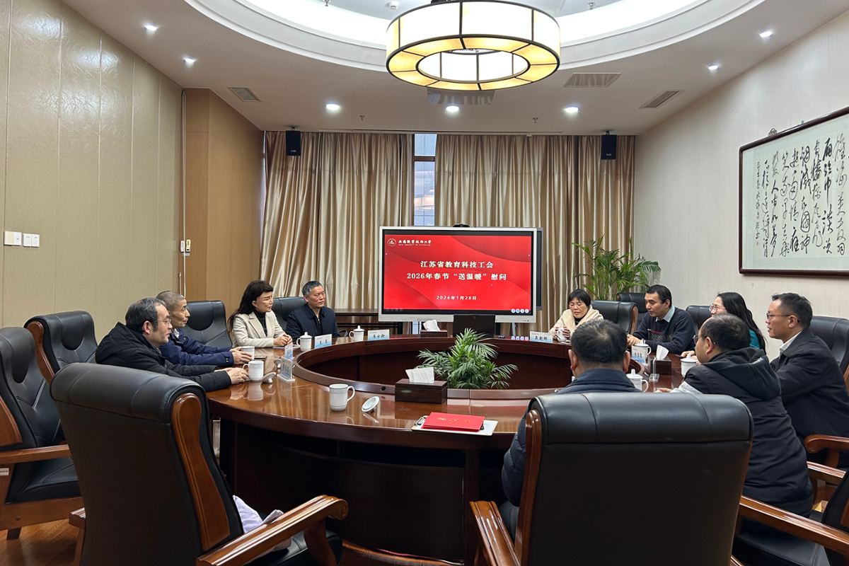 新春佳节将至,暖意温情先行。1月28日上午,省教科工会科研院所部部长吴宝城、省教科工会办公室主任、女职委副主任王芮、无锡市教育工会主席缪惠忠等一行莅临我校,开展 春节“送温暖”活动,走访慰问我校困难教职工。校党委副书记、工会主席杨雪琴、困难职工代表及校工会人员参加慰问活动。
