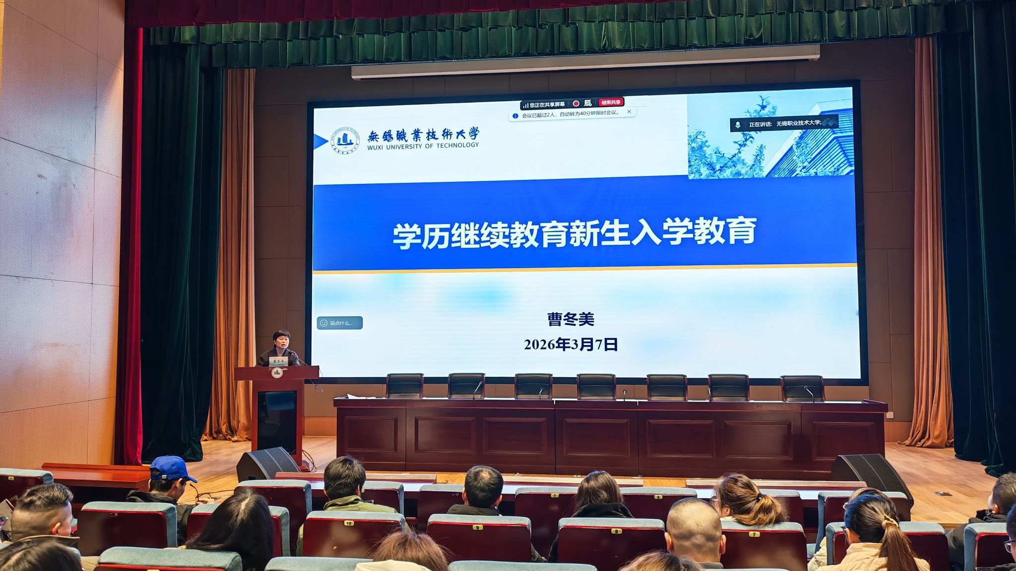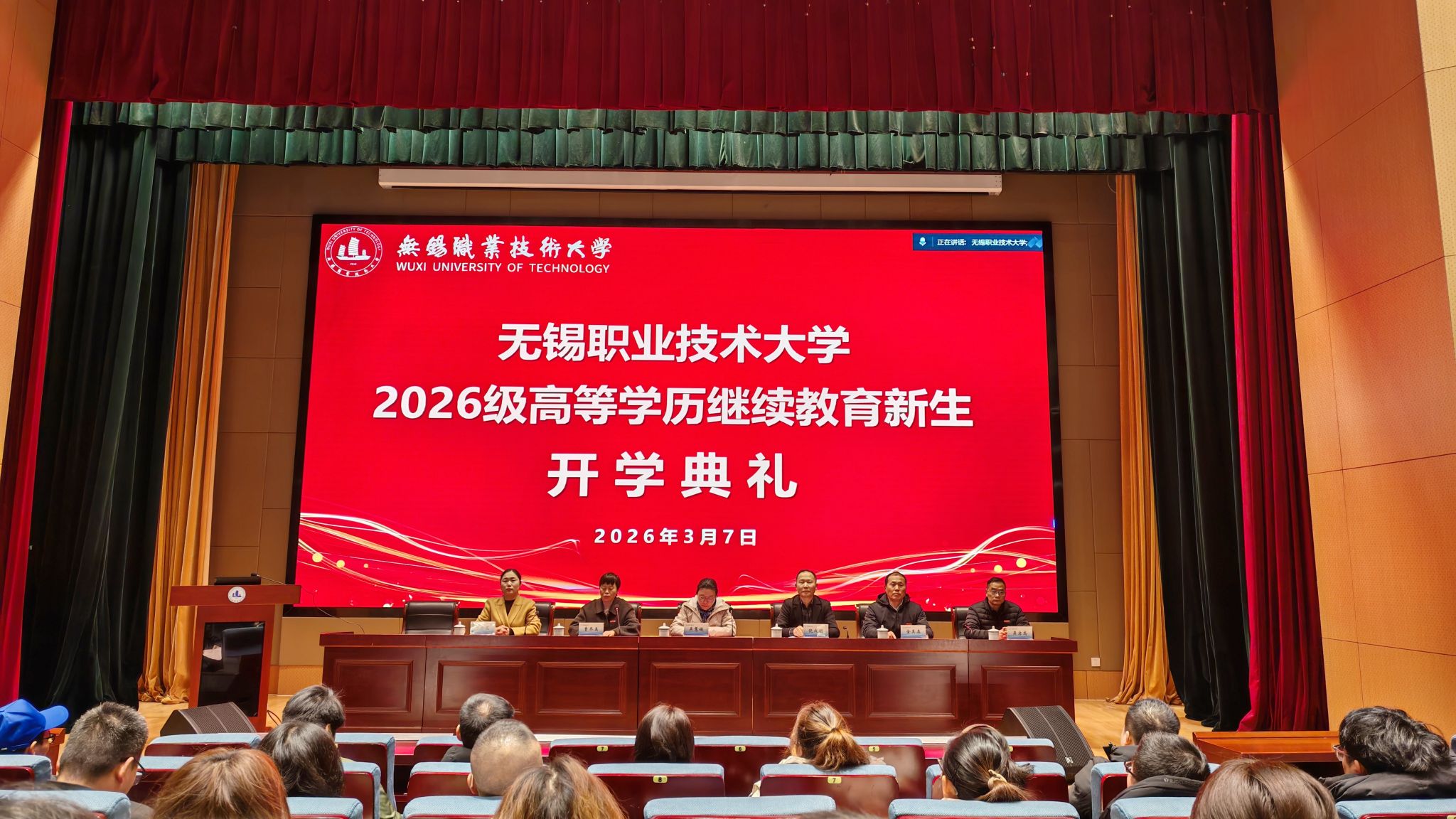 3月7日上午,我校2026级高等学历继续教育新生开学典礼在厚德楼一楼报告厅举行,典礼采用线上、线下相结合的方式进行。副校长吴慧媛、继续教育与培训部、校本部财经学院、无锡市太奇教育培训中心校外教学点等相关负责人及145名新生参加开学典礼。典礼由继培部副主任曹冬美主持。