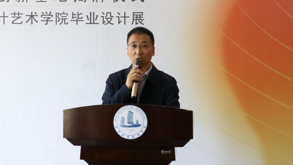 设计艺术学院院长杨敏对本次活动进行了介绍。她表示,近年来,学院在智能制造特色校背景下,坚持特色教学理念,加强产教融合、校企合作,始终致力于区域文化的传承创新研究。本次毕业设计展展示了同学们对江南美景和江南文化的感知力、观察力和表现力。