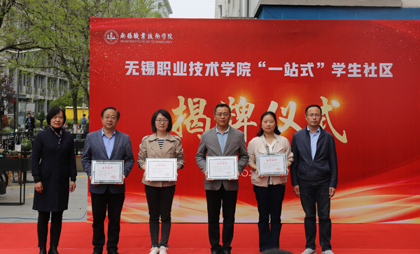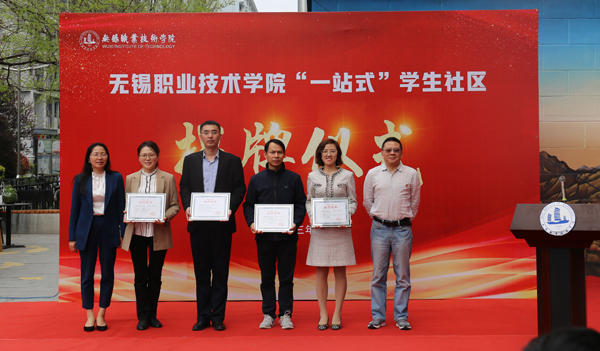 党委学工部副部长罗启宝就“一站式”学生社区“辅导员联合办公室”和“青春驿站功能室”进行功能解读,校党委副书记杨雪琴、机关党工委书记徐晴共同为“一站式”学生社区揭牌,并为8家学生社区创建单位授牌。