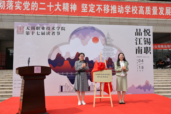 吴慧媛致开幕词,并宣布第十七届读者节开幕。她指出,本届读者节旨在引领全校师生读者共同开启一个充满智慧、温馨与美好的阅读之旅。读者节将为全校师生读者带来丰富多样,异彩纷呈的阅读盛宴。党委宣传部部长周春兰宣布教工读书协会成立,杨雪琴、吴慧媛为教工读书协会揭牌。教工读书协会是教职工自愿组织的群众团体,以“播恒远书香,筑精神家园”为宗旨,是为本校教职工搭建的一个读书交流与服务的平台。