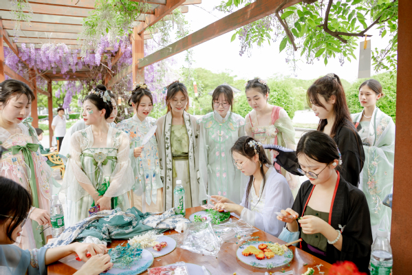 文化雅集社团展示在学校万迪文化广场的紫藤萝回廊下盛装举办,同学们身着鲜艳华丽的汉服,参与各项古典文化活动。现场有盛装游园会、汉服古典舞、亭中读书会、花间诵诗词、琴笛二重奏,春日品香茗、翰墨浸书香等古典文化展示与体验活动。置身其中,共赴一场古典之约,感受传统文化之美。集合校内优质社团,搭建文化大集,根据社团活动形式,分设体验区、展示区、动感地带等,为读者展示社团作品、社团特色与社团才艺。“锡心相伴 助力成长”让读者更加了解心理协会与大学生心理健康教育中心。