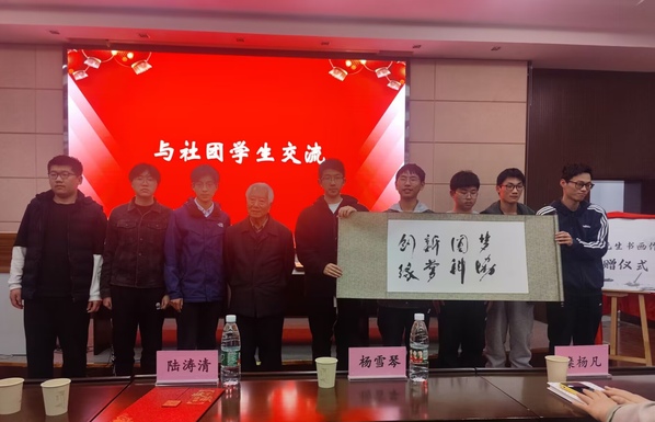 活动最后,陆老先生受邀为我校大学生科技协会题字:创新圆梦缘梦科协,并前往科技协会活动室作技术指导。科技协会的同学们也为陆老师送上精心准备的科技制作。