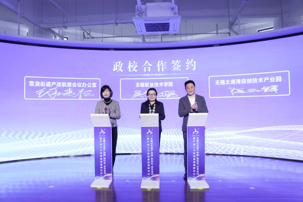 为通过政校企合作,产学研融通,推动产业工人建设改革,共助“产改赋能”发展,3月22日上午,由雪浪街道产改联席会议办公室、山水城产业园产改联席会议办公室主办,我校承办的无锡山水城产业园“政校企合作”签约暨产业人才培训基地揭牌仪式隆重举行。我校副校长吴慧媛,无锡市总工会党组成员、副主席陈一方,滨湖区委常委、统战部部长、总工会主席陈虎,滨湖区总工会党组书记、副主席曹洪达等领导应邀参加活动。
