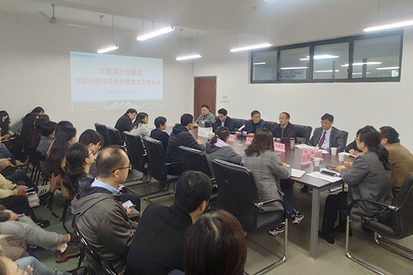 11月22日,党委第三巡察组召开动员会。巡察组副组长宋静辉代表组长周春兰就即将开展的巡察工作作动员讲话,外语与旅游学院党总支书记郭再泉主持会议,并代表学院领导班子就贯彻落实巡察组要求、配合做好巡察工作作表态发言。党委第三巡察组成员、外语与旅游学院班子成员、全体教职工、学生代表参加会议。