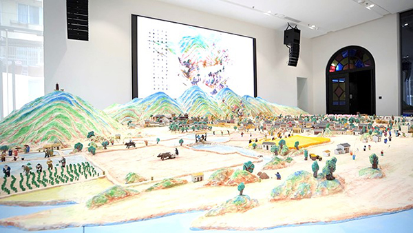 本次展出的大型彩塑作品《吴韵祥瑞图》规模宏大、内涵丰富、人物众多。场景总长约10米,宽6米,高2米,近100多个标志性场景故事。《吴韵祥瑞图》以惠山泥人主体形象“阿福”诞生地无锡惠山及山下的惠山古镇为背景,采用惠山泥人传统技艺,手捏泥塑了惠山、锡山、“人杰地灵”牌坊、寄畅园、天下第二泉、华孝子祠、惠山祠堂群、二泉书院、皇帝下江南等场景,生动展示无锡名山名泉、历史风貌,再现水韵江南春耕、夏种、秋收、冬藏的诗与远方。