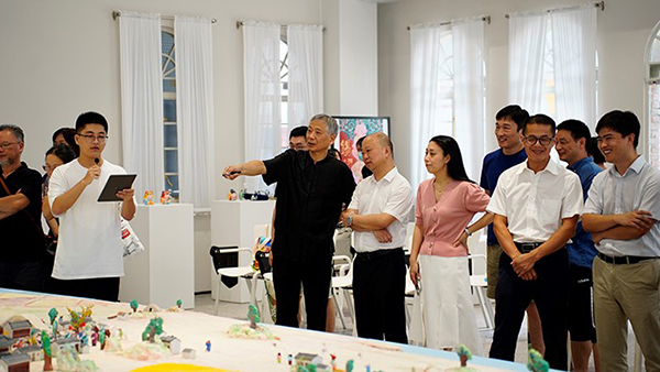 师生解说团队向来访嘉宾介绍展示作品