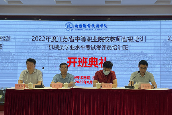 8月13日上午,由我校机械技术学院承办的2022年江苏省中职教师省级培训-机械类学业水平测试考评员专项培训项目开班仪式项目开班仪式在无锡举行。继续教育学院院长崔平、机械技术学院副院长唐立平、于金程、江苏省中职学业水平考试办公室朱亚东主任、省培班班主任,以及来自江苏省内中等职业院校的60位骨干教师参加开班仪式,仪式由于金程主持。