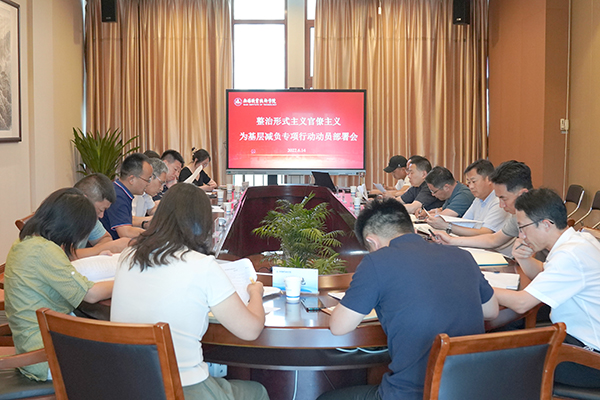 6月14日,学校在综合楼F204会议室召开整治形式主义官僚主义为基层减负专项行动动员部署工作会议,传达学习省委教育工委、省教育厅《关于开展高校整治形式主义官僚主义为基层减负专项行动的通知》精神,对我校开展专项整治工作进行动员部署。校党委副书记周桂瑾、相关牵头部门负责人参加了会议。会议由党院办主任刘战伟主持。