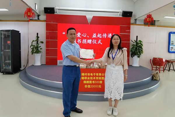 为支持我校早日建成职业技术大学,进一步充实我校图书馆馆藏,无锡村田电子有限公司向我校首批捐赠了500册图书,助力我校文化建设。捐赠仪式上,杨雪琴为企业颁发捐赠证书并表示,一直以来,很多用人单位和爱心企业或建言献策,或出资助学,以各种形式支持学校的建设和发展,这次图书捐赠不仅为学校的建设发展提供了物质帮助,更为学校发展注入了强大精神动力,再次对广大用人单位、爱心企业对学校的关心和支持表示诚挚的感谢!我校图书馆馆长韩冰代表学校接收捐赠书籍。