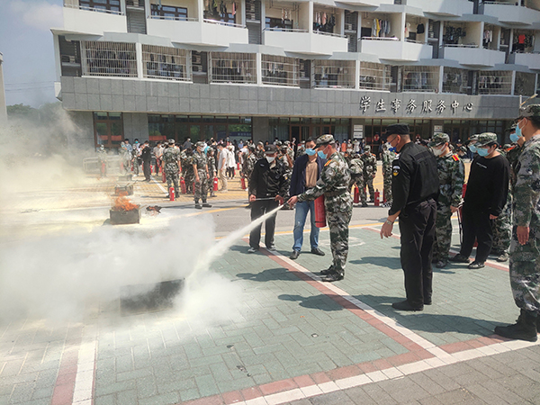 5月8日和5月15日,结合我校2020级学生军训,保卫处还组织开展了消防应急疏散及灭火演练。近千名参训学生投入到演练活动中,切身感受到了危险来临时的紧张氛围,初步掌握了逃生技能和扑灭初起火灾的技能,提升了自救能力。