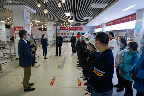 校领导一行在太湖校区南门岗、第五餐厅、学生事务中心、值班教职工办公室等处,向校园封闭管理期间坚守在工作岗位,为学校安全工作保驾护航、为在校学生做好服务保障工作的教职员工表达了深切的问候,对他们义无反顾地投入到学校抗疫一线辛勤工作表示衷心感谢。校党委书记朱爱胜指出,目前疫情防控形势依然严峻,我们要进一步织密筑牢学校疫情防控网,提高科学精准防控水平,统筹做好疫情防控和学校各项工作,在特殊时期更要密切关心关爱师生员工的工作、学习和生活,及时解决师生反映的各项问题,保障校园封闭管理期间师生的防控物资和生活需求。