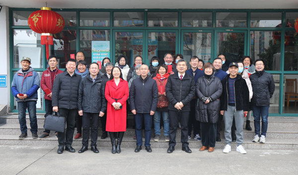 校领导一行在南门与在岗人员合影