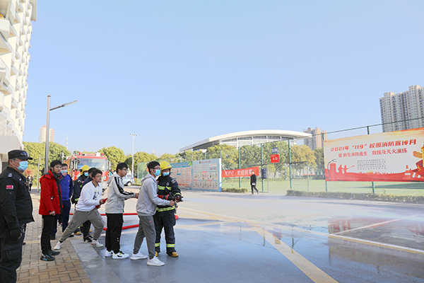 11月26日,保卫处联合无锡市消防救援支队,开展2021级新生消防专项培训与消防演练活动。副校长强伟纲出席并作“落实消防责任,防范安全风险”的主题讲话。4000名新生参加演练活动,提升防火意识、逃生能力和灭火技能。