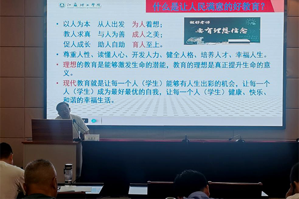 江苏理工学院院长、校党委副书记崔景贵教授应邀为学员作了题为《学思践行习近平总书记关于教育的重要论述——做新时代专业卓越的“四有”好教师漫谈》的专家讲座,他鼓励大家“把握时代意蕴,读懂学生心灵和理解现代职教,积极应对人工智能的新挑战,努力做更为适合、更加优质的积极职业者”。